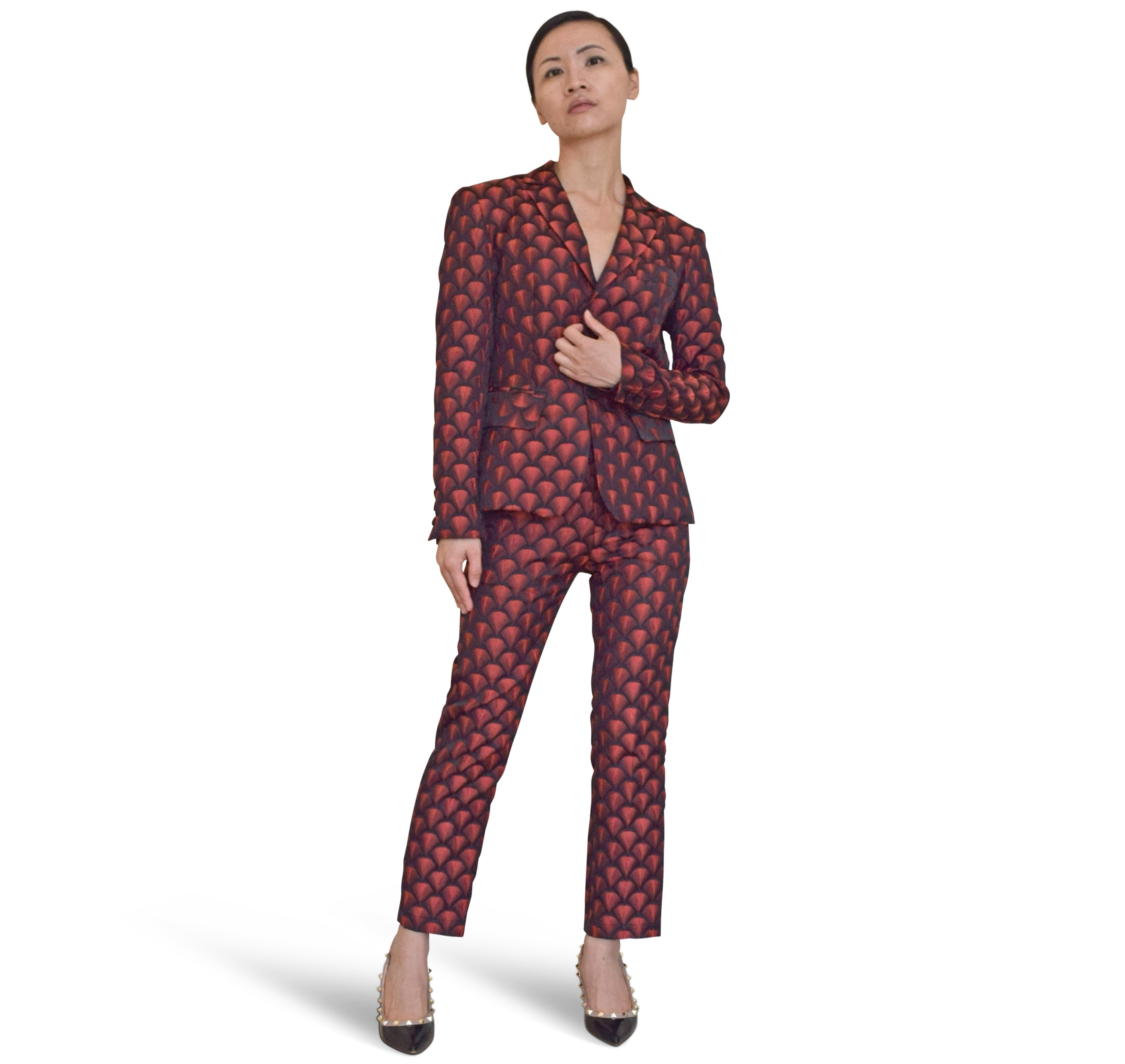 Bird-Print Jacket and Pants Set