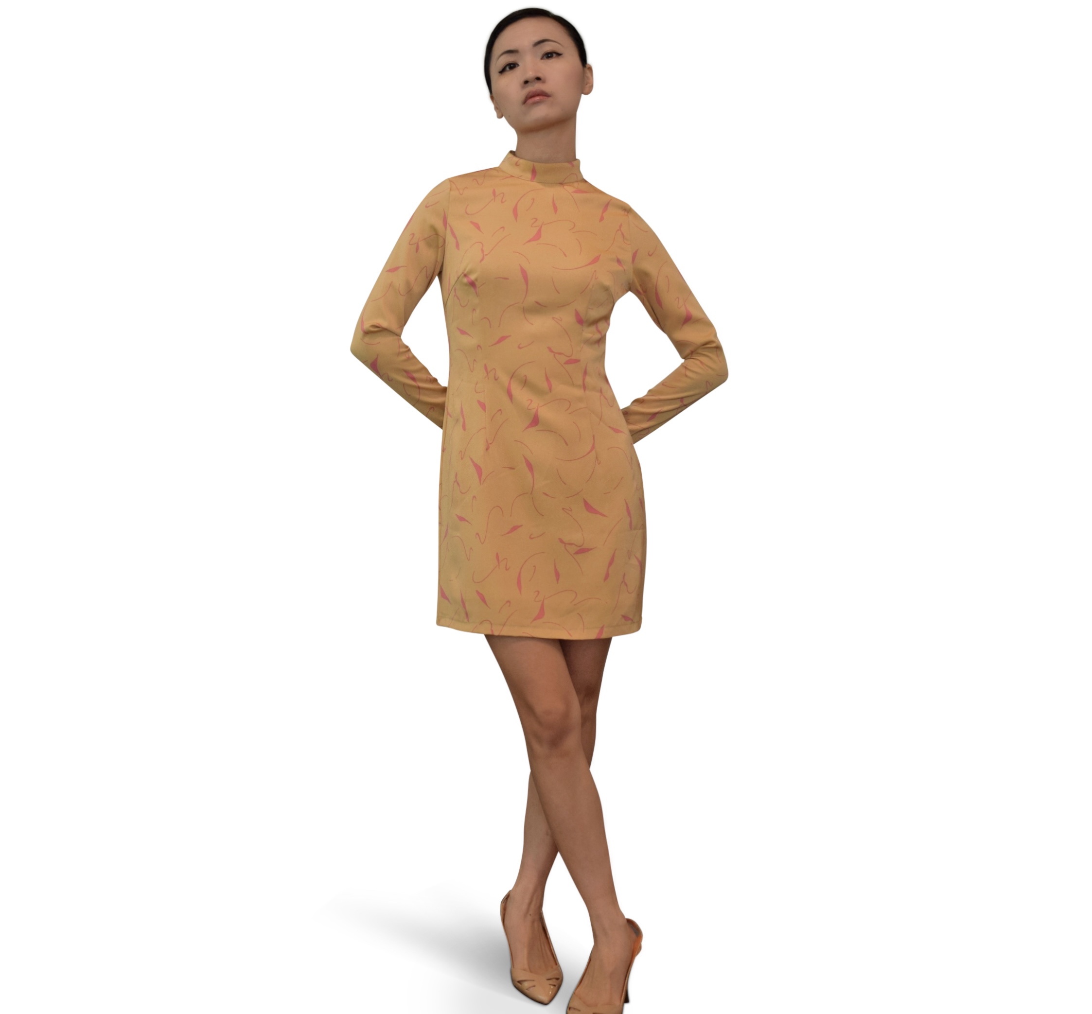 Mock-Neck Floral Mini Dress