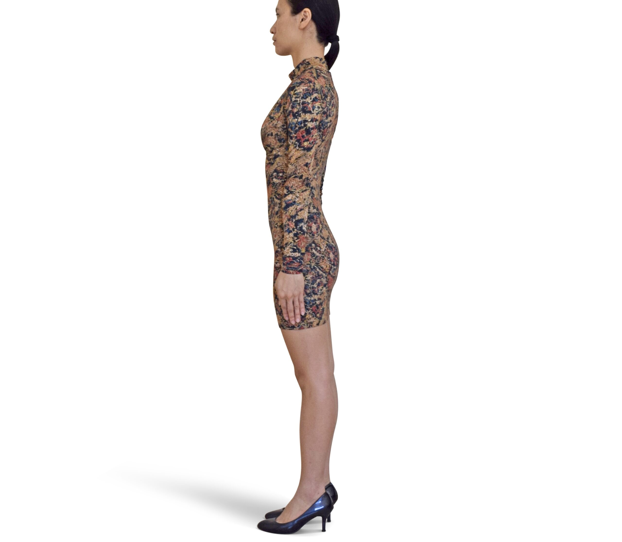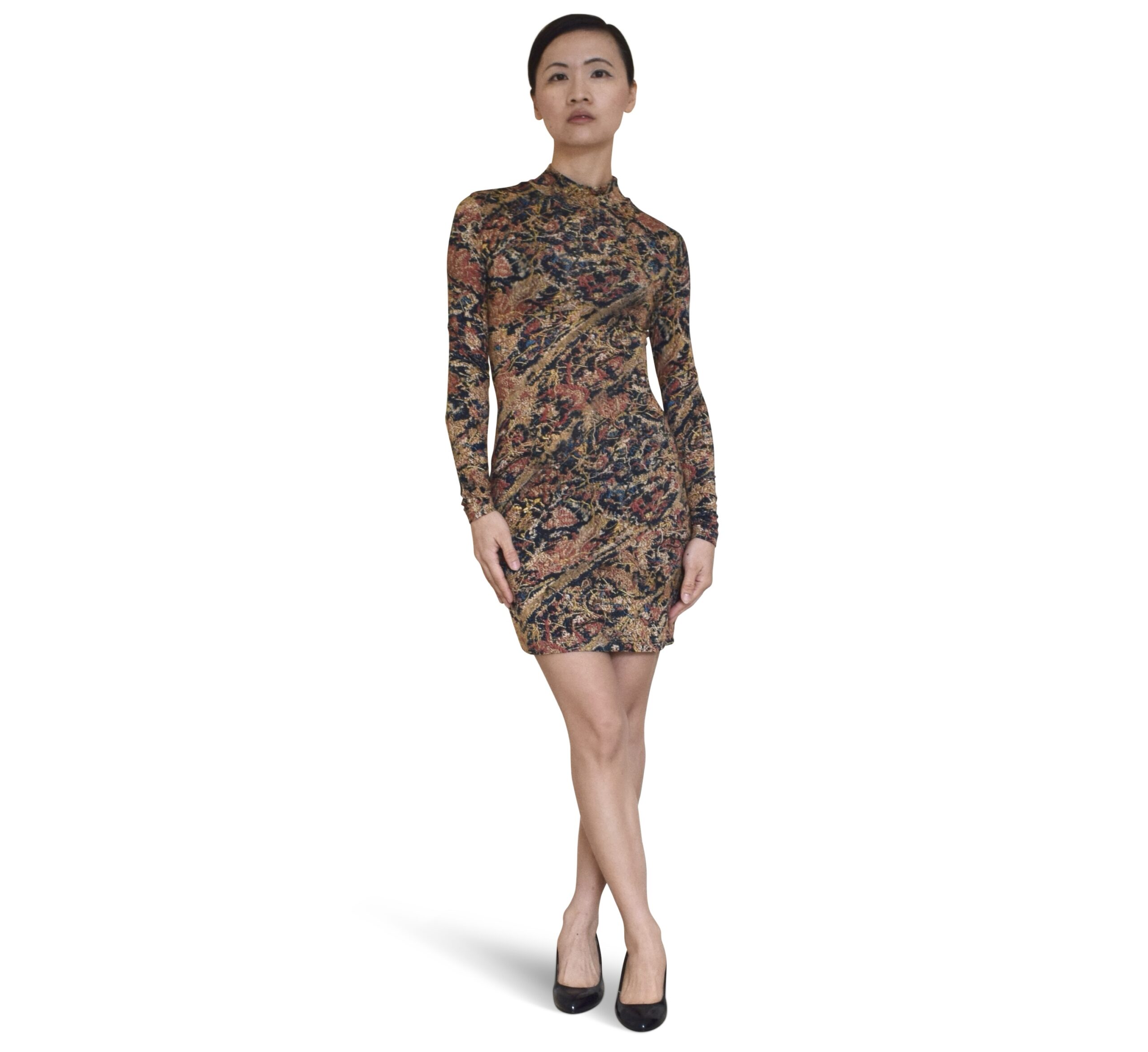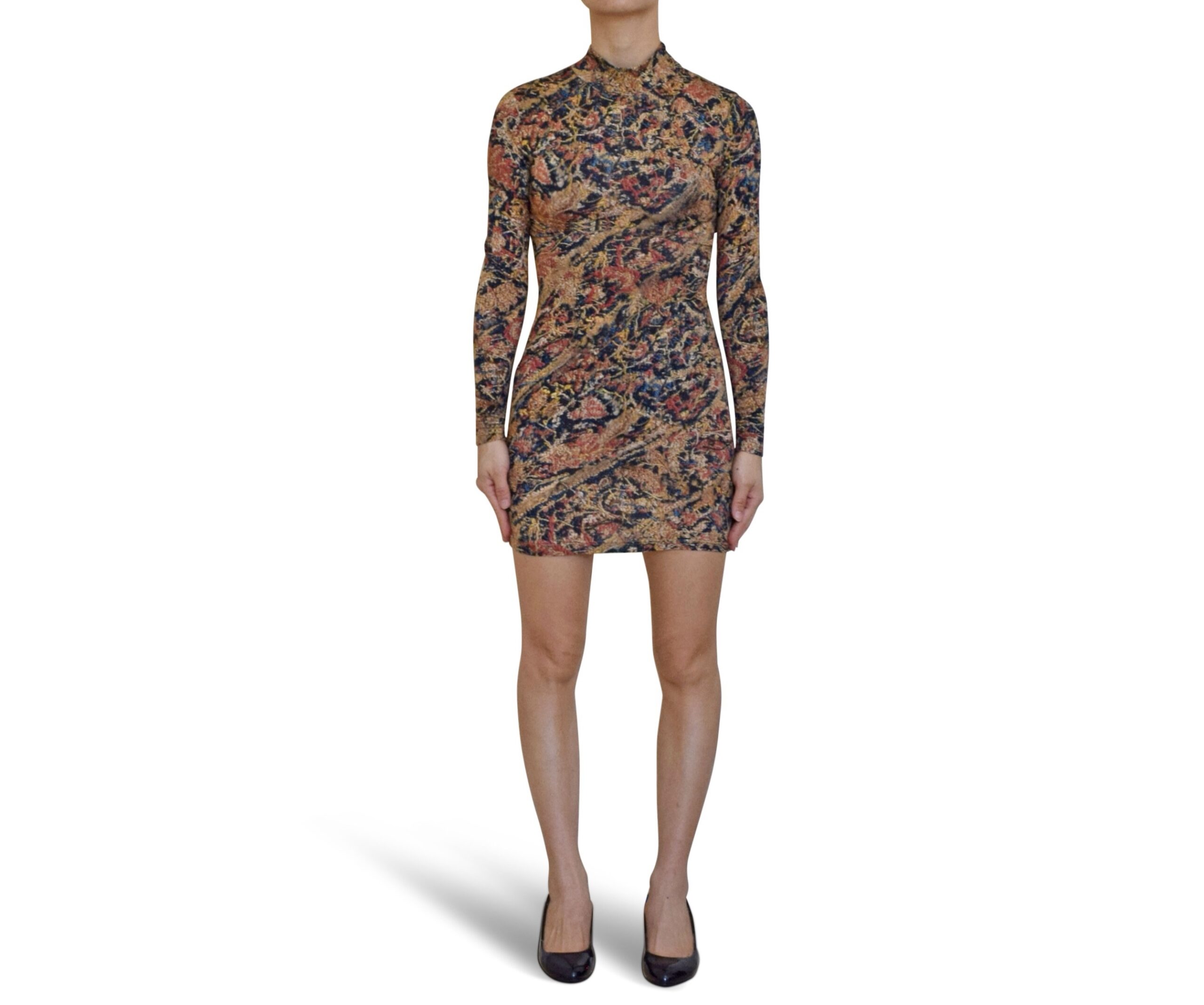 Mock-Neck Floral Mini Dress