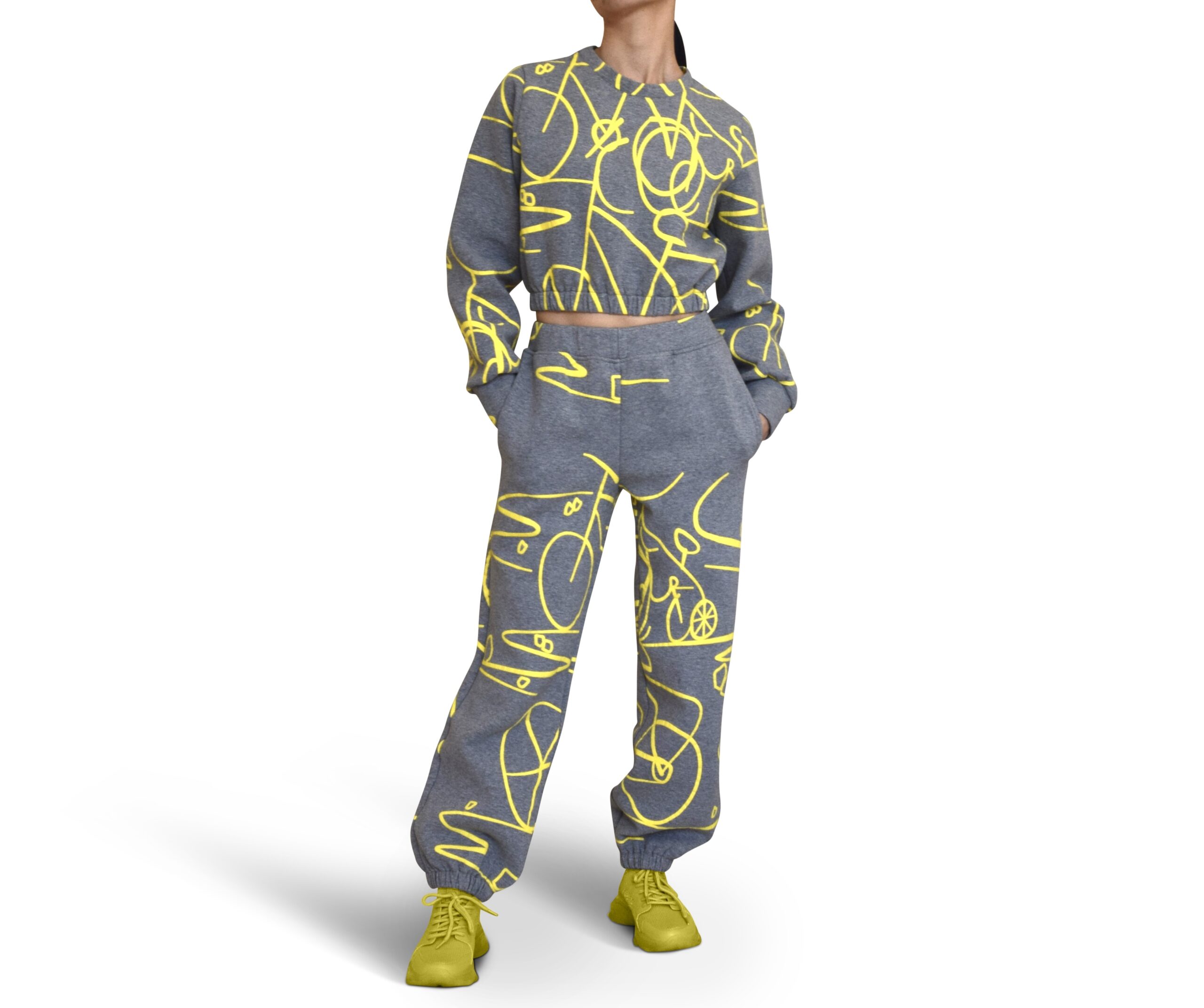 Cropped Sweatshirt with Handmade Print